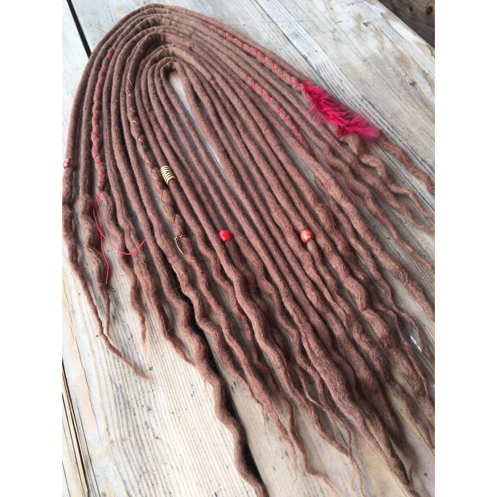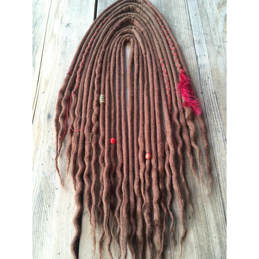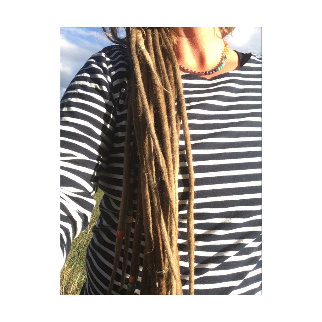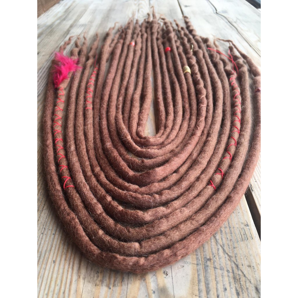 Vlněné dredy jsou vyráběny ručně, jsou pevné a zároveň lehounké. Vlna je navíc přírodní materiál a tyto dredy jsou témeř bezúdržbové.