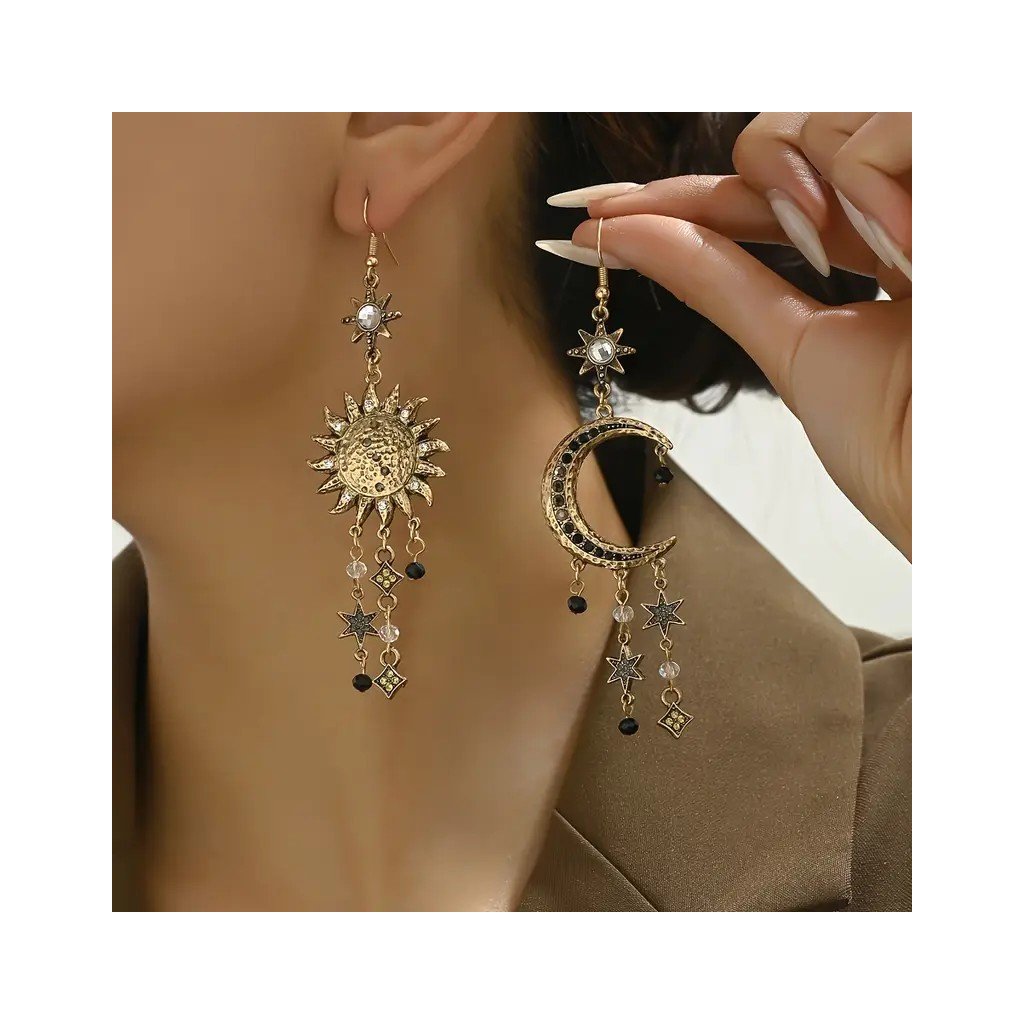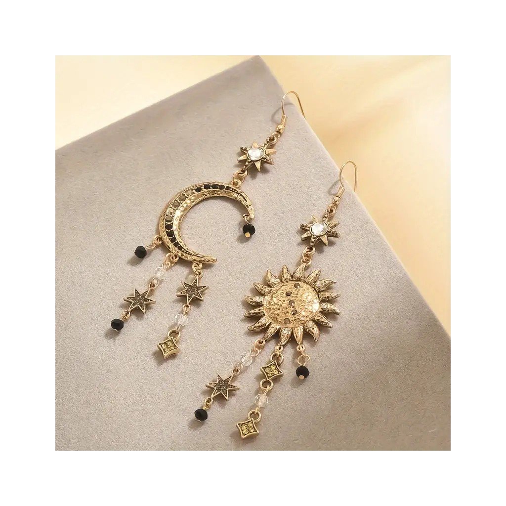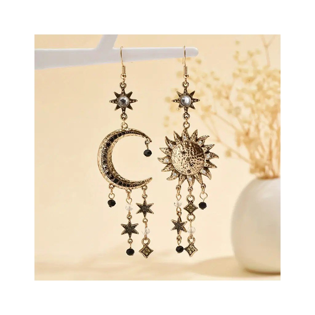 Boho náušnice Slunce a Měsíc zdobené